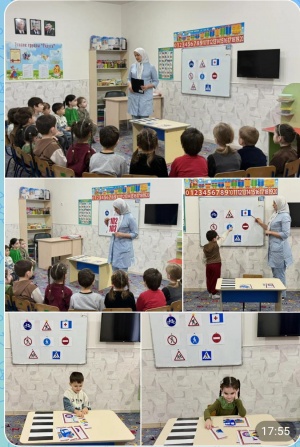 Старшая группа "Радуга". Воспитатель: Сулайманова Жарадат Асламбековна. Провела занятие по ПДД на тему: "Безопасность на дороге". Цель: учить детей различать дорожные знаки по цветовой гамме и форме, формировать систему знаний о дорожных знаках, ...