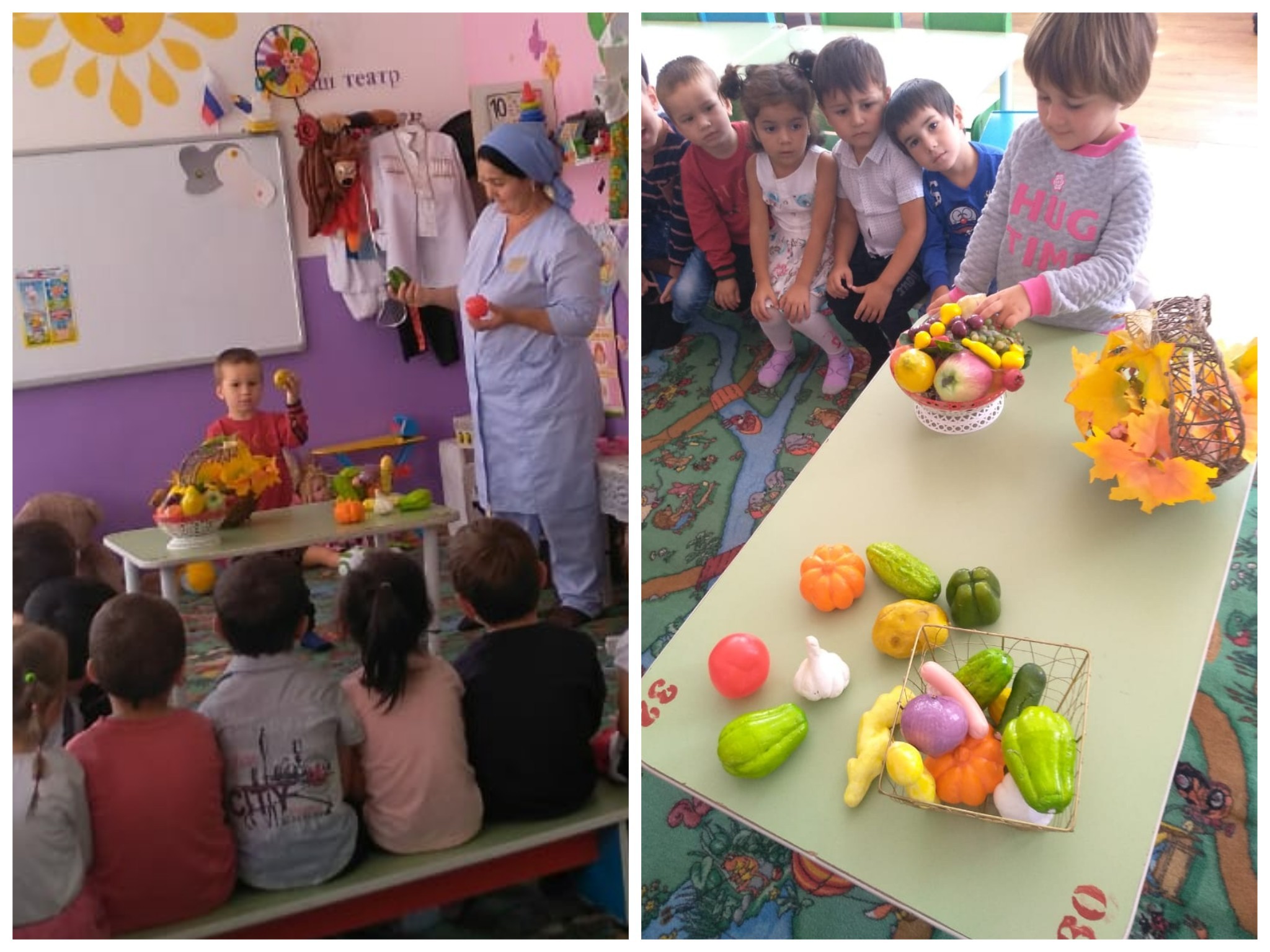 Цель: познакомить с названиями овощей, местом их выращивания.