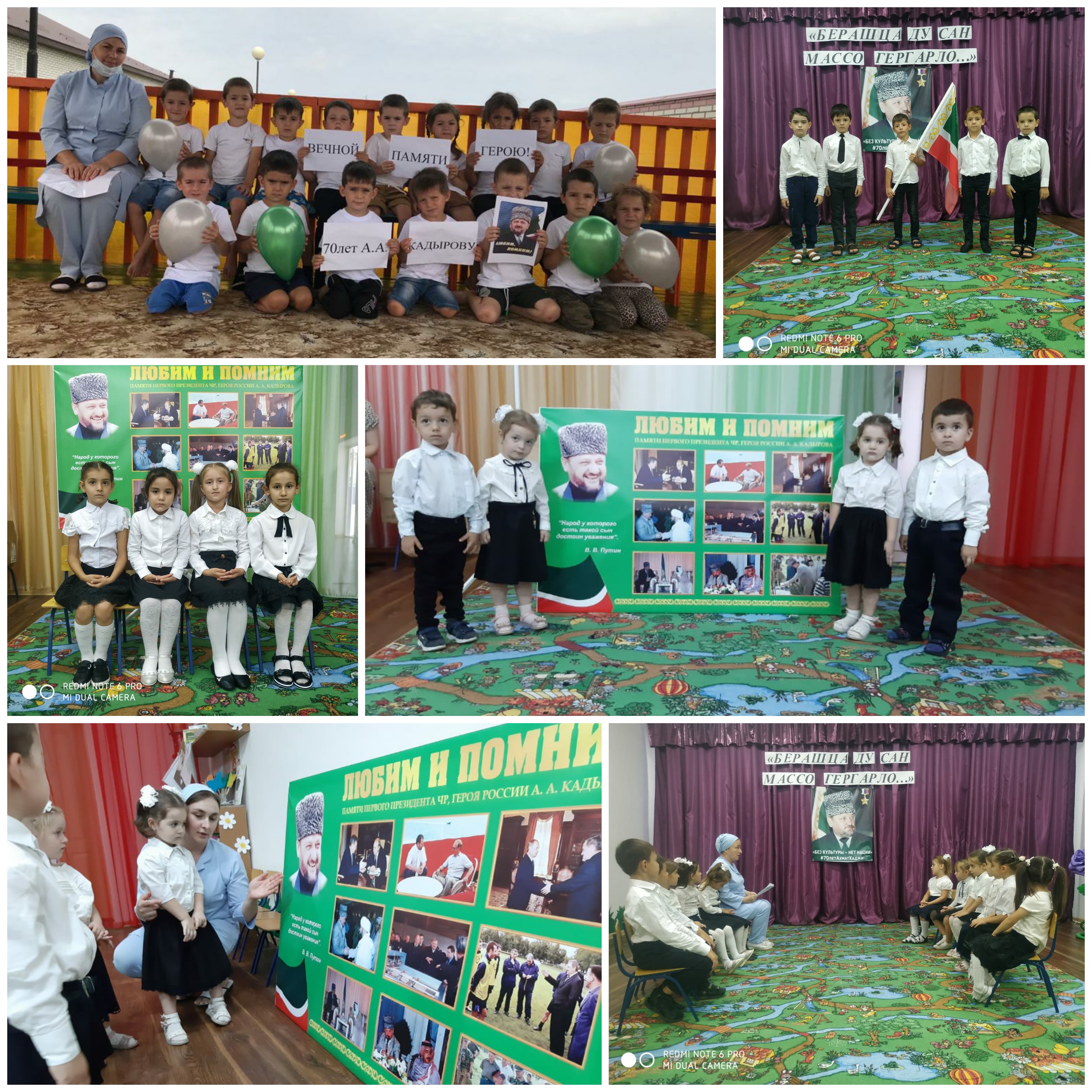 23.08.2021В МБДОУ «Детский сад «Ангелочки» с.п.Братское» прошли мероприятия, приуроченные к 70-ой годовщине со дня рождения Первого Президента Чеченской Республики, Героя России А-Х.А.Кадырова (Дала г1азот къобал дойла цуьнан). С воспитанниками проведены тематические беседы, дети читали стихотворения, спели песню о А-Х.А.Кадырове.