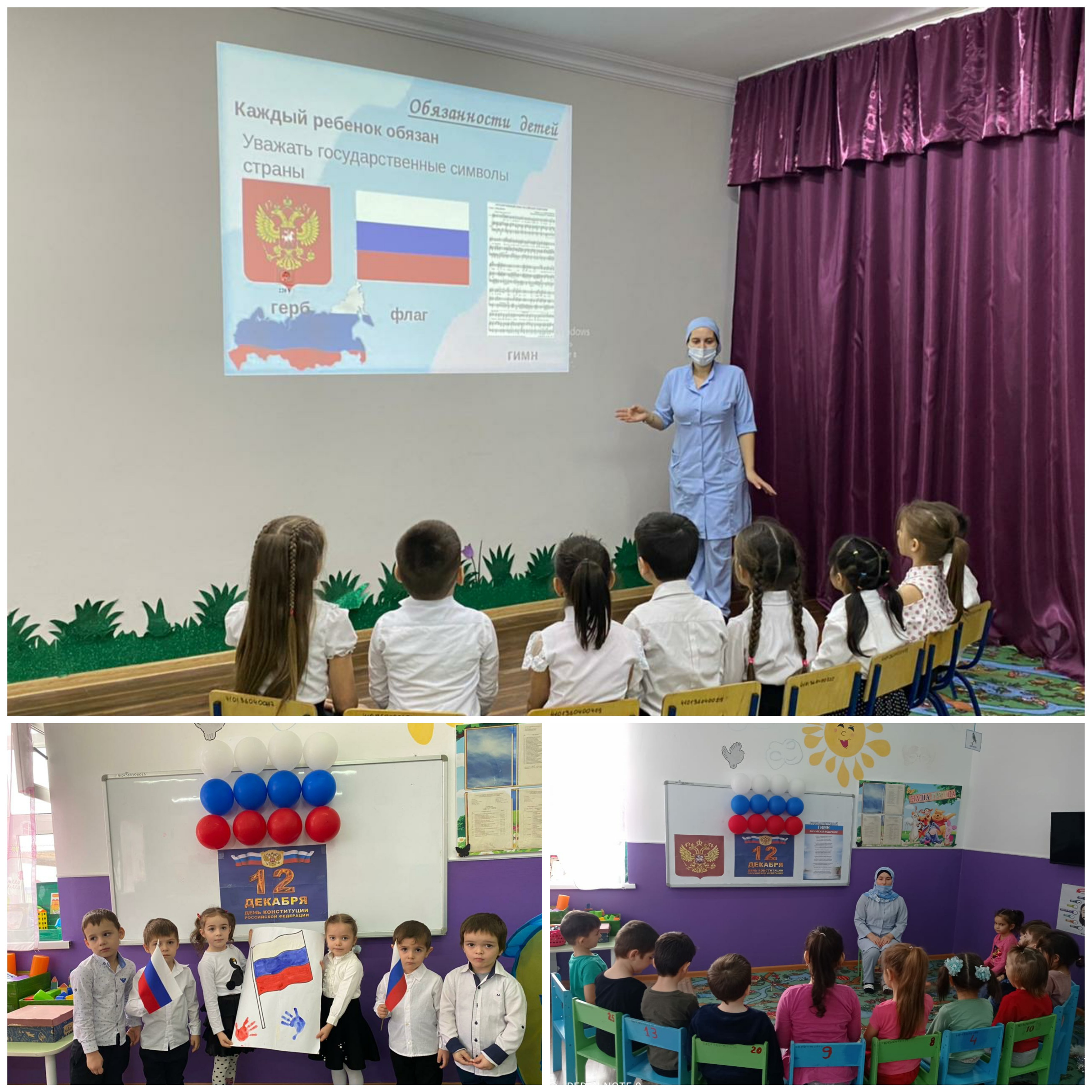 12.12.2021В целях патриотического воспитания дошкольников, воспитания в детях уважения к закону, как к правилу жизни граждан, воспитателями проведены мероприятия, посвященные Дню Конституции Российской Федерации.