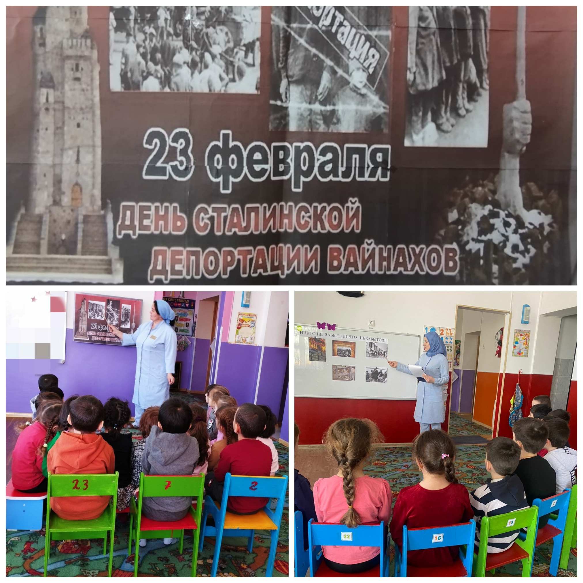 22.02.2023В старшей и подготовительных группах проведены беседы, посвященные Дню депортации чеченского народа с целью ознакомления детей с понятиями «депортация», «геноцид»; раскрытия сущности геноцида, проводимого против народов; воспитания гражданско-патриотических качеств.