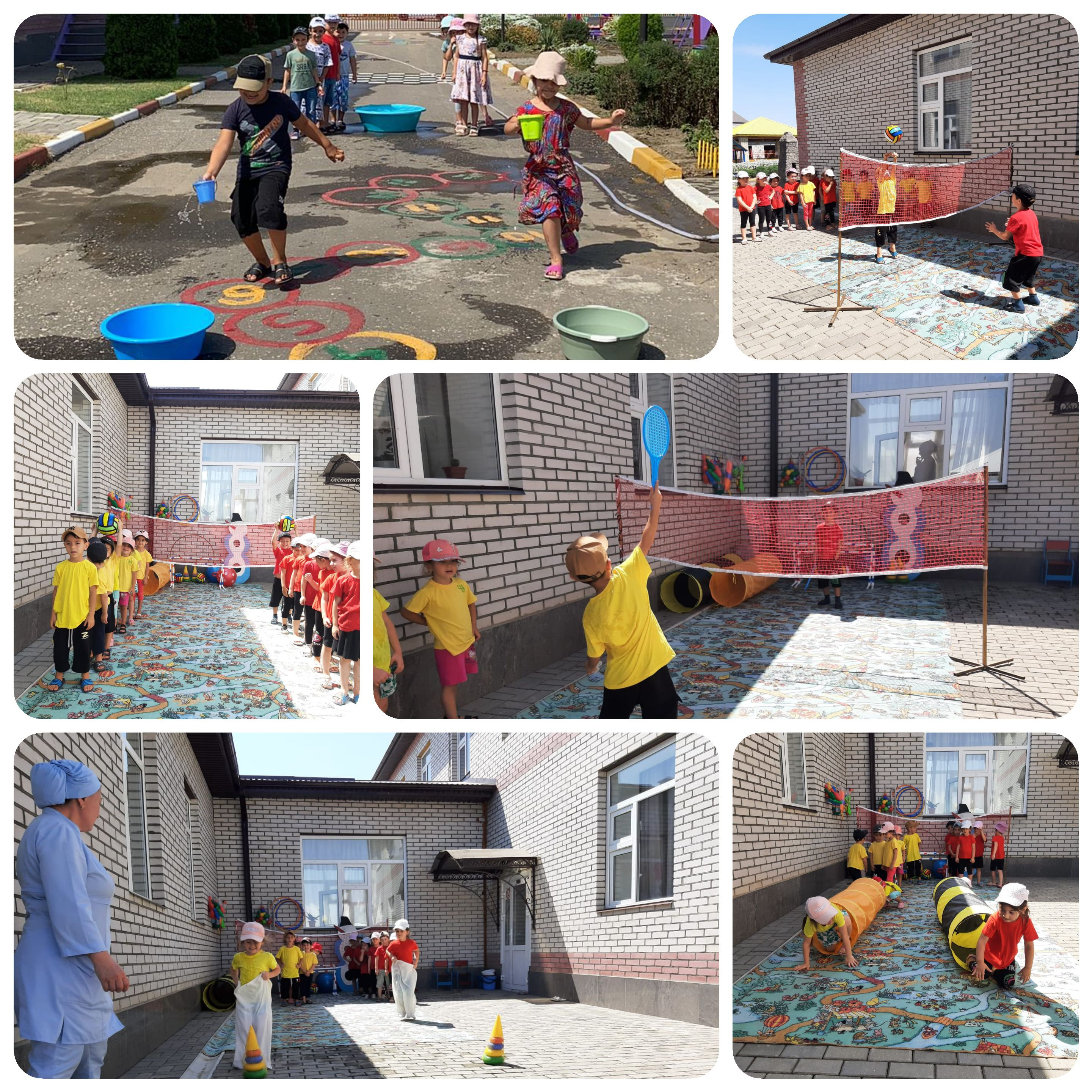 В рамках тематической недели «Неделя здоровья и спорта» проводились беседы: - о здоровом, полезном, вкусном, но не полезном питании - об одежде по сезонам года и погодных условиях - о закаливании (воздухом, солнцем, водой) - о влиянии физических упражнений, занятием спортом - о различных видах спорта Всю неделю, дети практически изучали виды закаливания, использовали разнообразное оборудование для физических упражнений, изучали атрибуты для различных видов спорта. Завершало неделю спортивное развлечение «Путешествие по королевству «Будь здоров!» с детьми всех возрастных групп. Дети играли в подвижные игры, состязались в различных конкурсах.