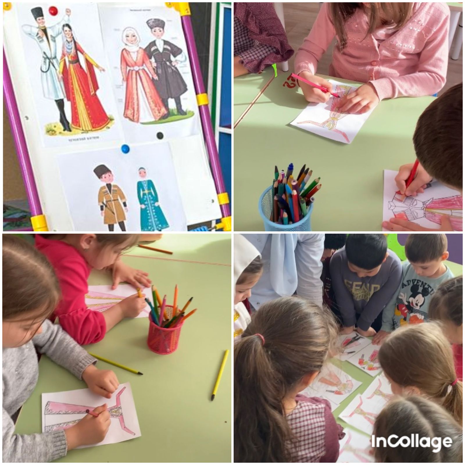 24.04.2024В целях исполнения Плана мероприятий, посвященных празднованию Дня чеченского языка в 2024году 24 апреля 2024года в подготовительной группе «Жемчужинки» проведено тематическое занятие по продуктивной деятельности (рисование) на тему «Национальный чеченский костюм»
