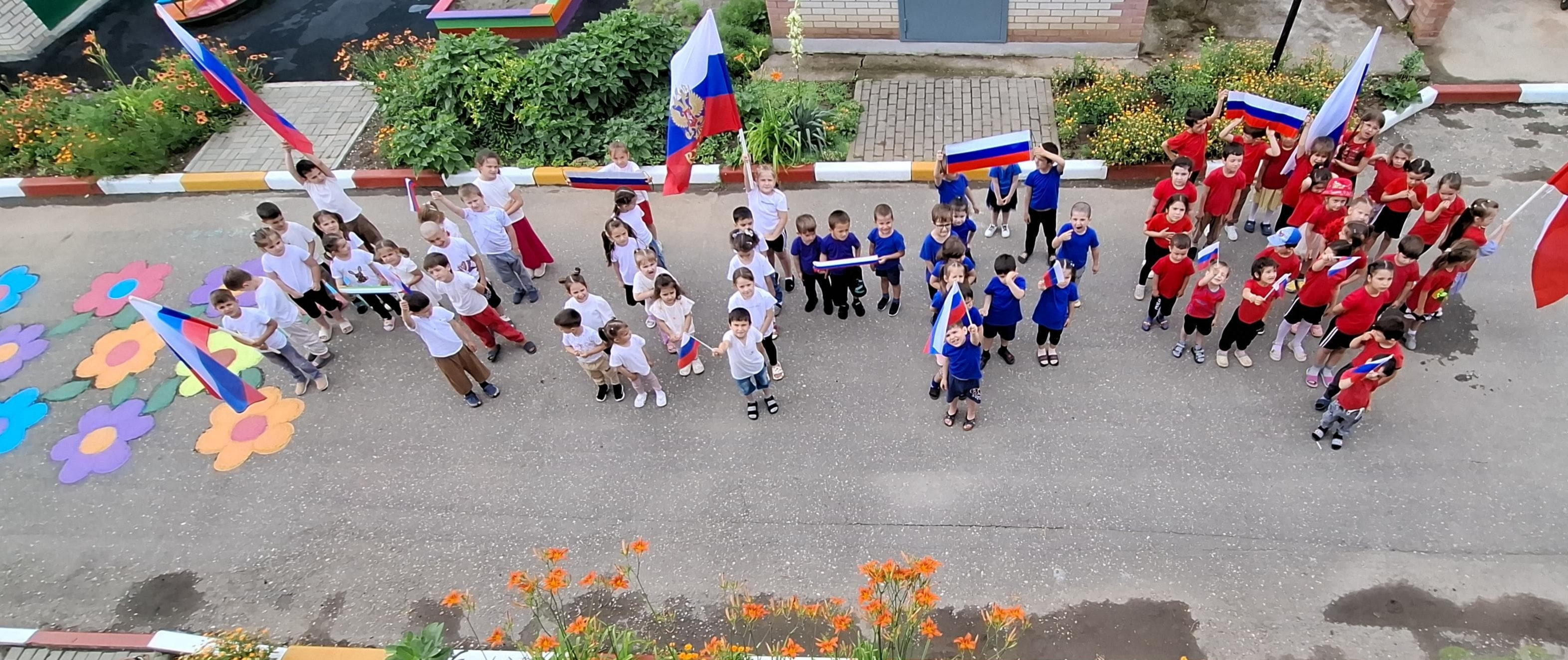 11 июня 2024 года наши воспитанники приняли участие в флешмобе ко Дню России и выстроились в надпись «Мы – РФ»