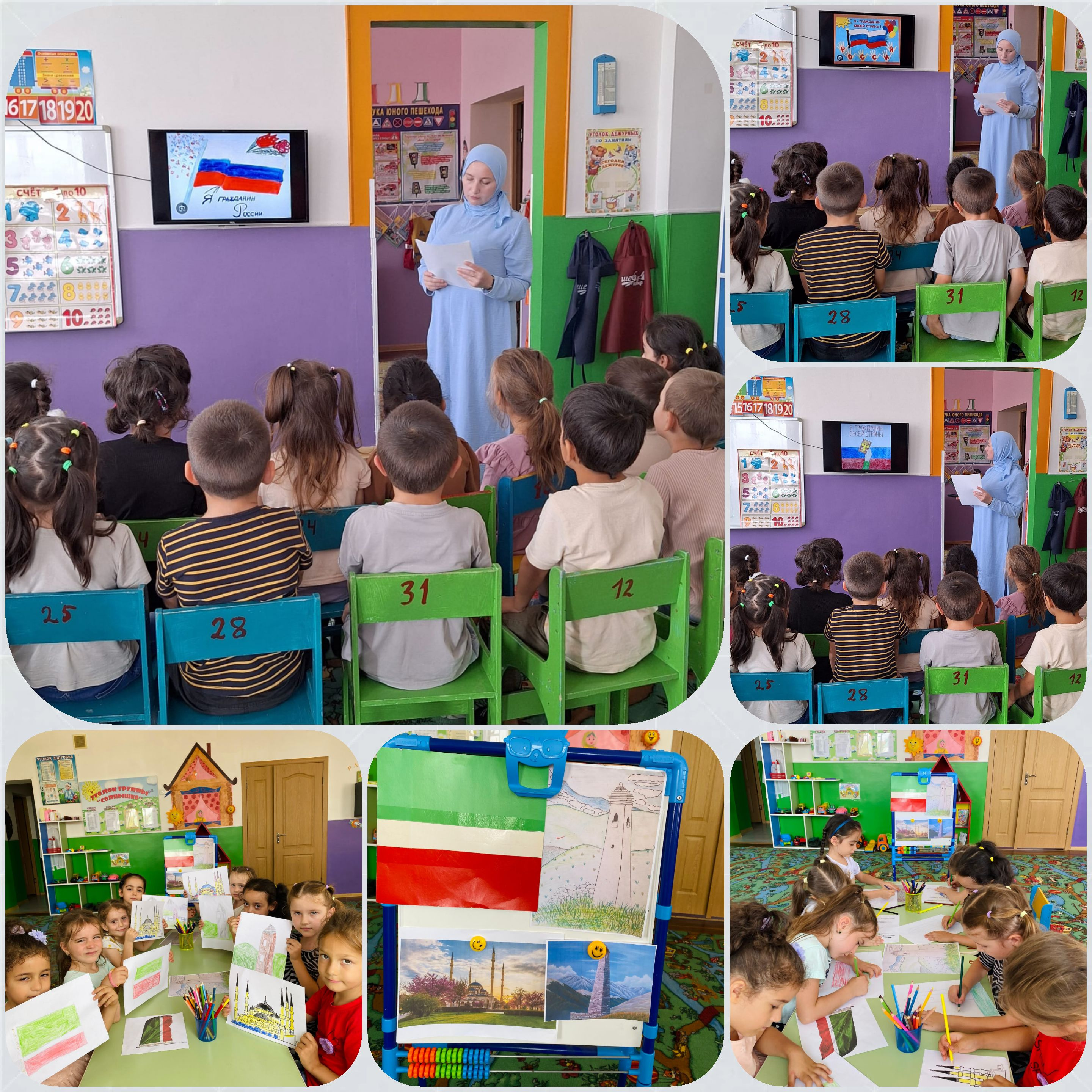 06.09.2024В рамках реализации годового плана работы МБДОУ «Детский сад «Ангелочки» с.п.Братское» на 2024-2025 учебный год и с целью воспитания у детей чувства патриотизма, любви к малой Родине 06.09.2024года с воспитанниками старших и подготовительной групп были проведены тематические беседы на тему «Я – гражданин своей страны» и занятия по продуктивной деятельности (рисование) «Моя Чечня». Также с воспитанниками старшего дошкольного возраста разучены стихи о малой Родине.