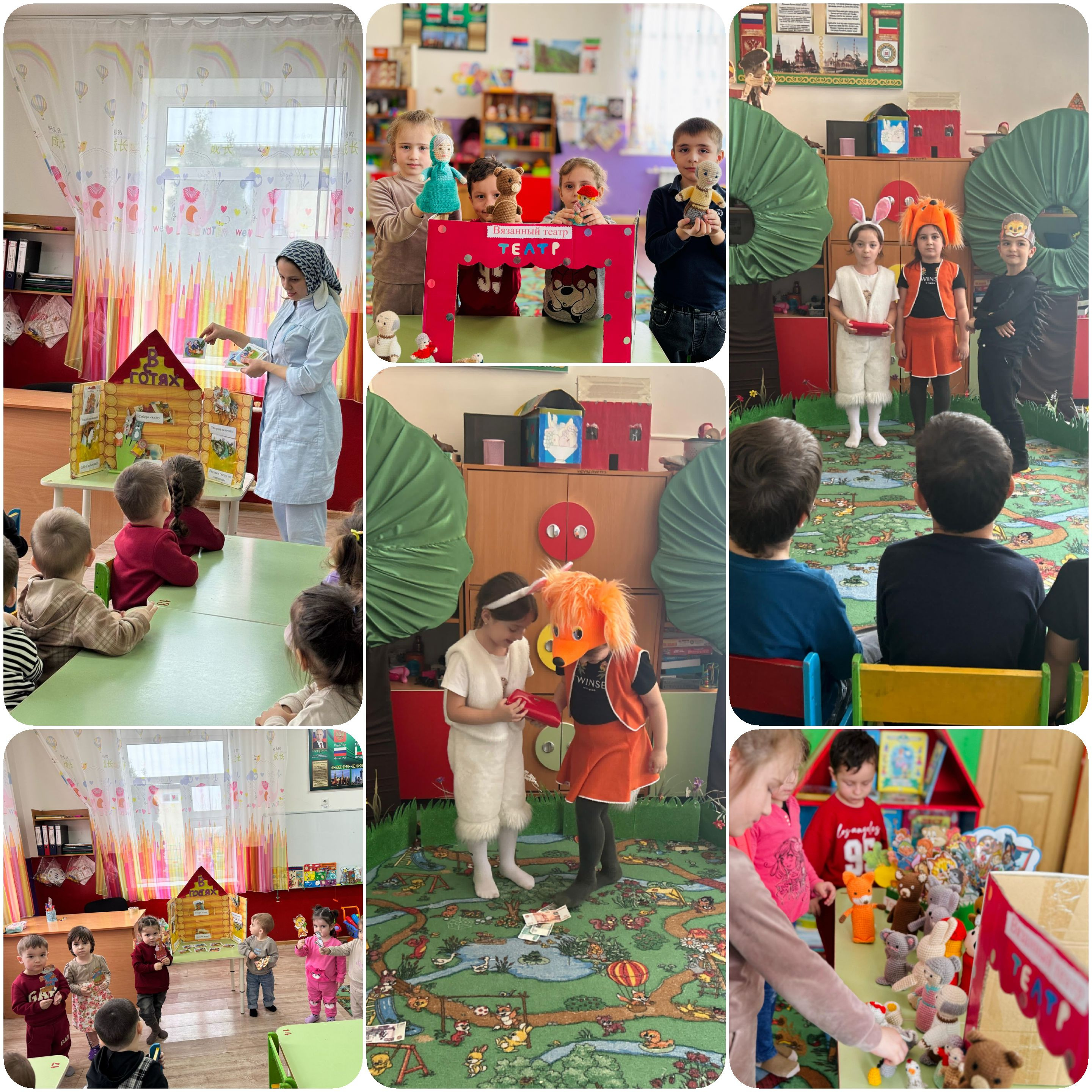 Все дети любят спектакли. Им нравится не только представление, а самим быть артистами. Ребята с удовольствием участвовали в театральных постановках, исполняли роли в детских спектаклях, используя разнообразные декорации, костюмы, перевоплощались в героев любимых сказок, сопровождая свои выступления стихами, музыкой и танцами. Это помогло создать весёлый эмоциональный настрой и хорошее настроение на целый день.
