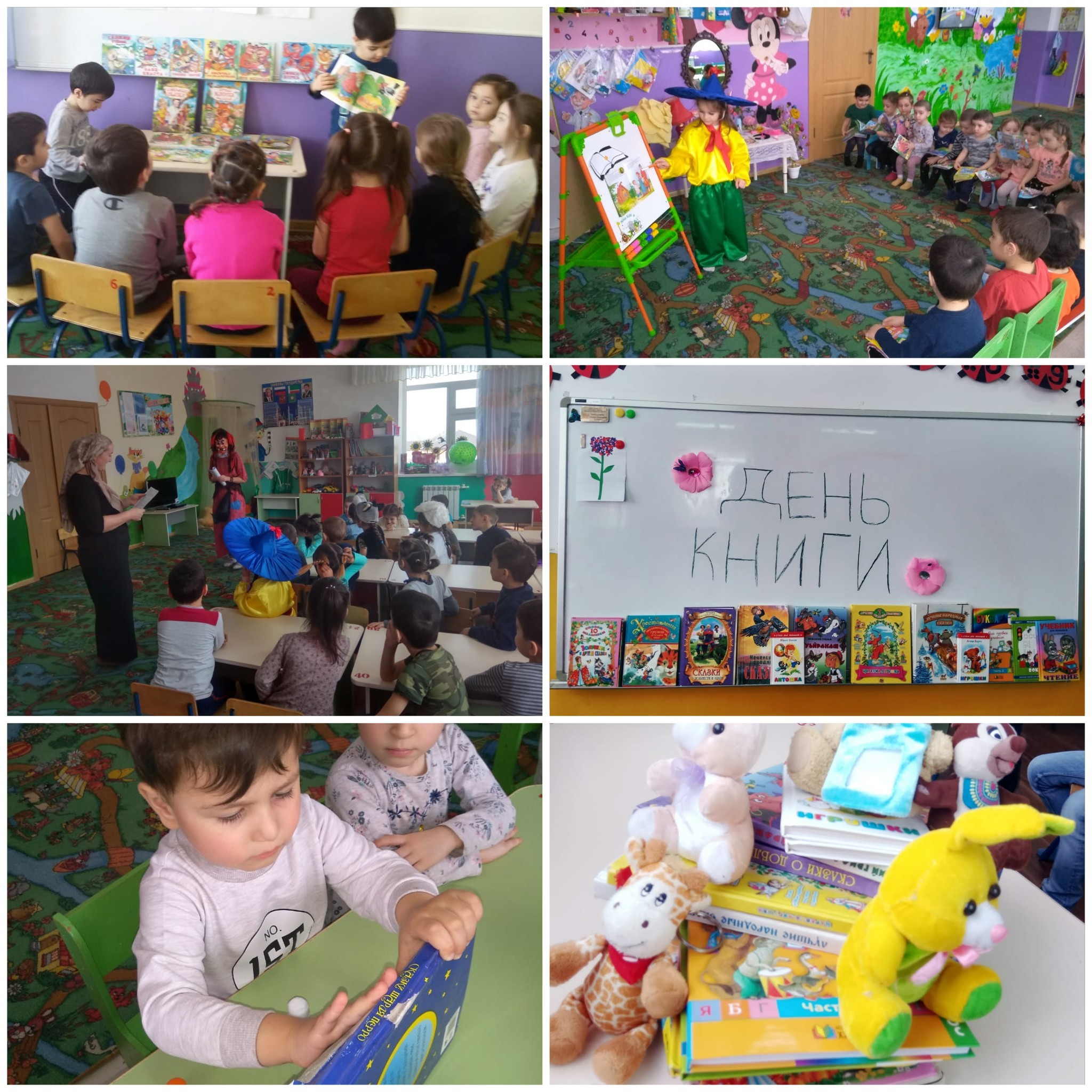 Дети путешествовали вместе с героями праздника по станциям, таким как «Загадочная», «Сказочная»,«Игровая». Дошкольники с большим интересом слушали рассказ о том, как и где родилась первая книга. Воспитанники других возрастных групп в этот день «лечили» книги, отгадывали загадки, сказочных персонажей.