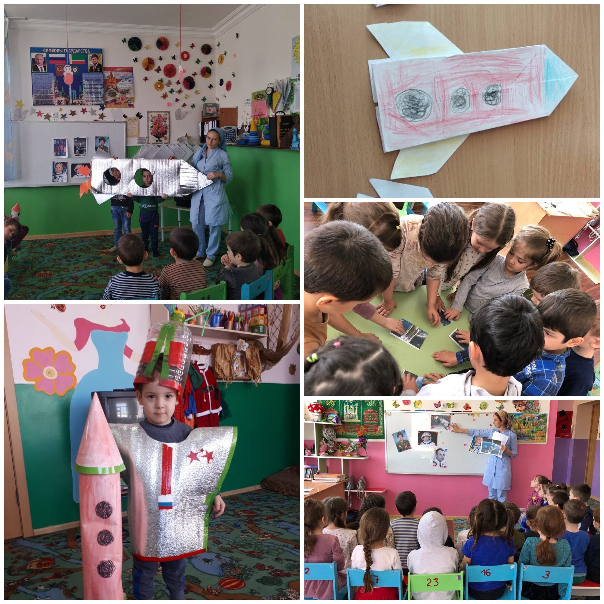 12.04.201911-12 апреля в нашем детском саду отмечали День космонавтики - памятную дату, посвященную первому полету человека в космос. Воспитатели познакомили детей с космосом, используя разнообразные методы и приёмы, для того, чтобы дети узнавали об удивительных открытиях в космосе, о первом спутнике и полете Гагарина, высадке человека на Луну, современных космических станциях и полетах к Марсу. Детям интересна тема космонавтики, особенно мальчикам, поэтому дети слушали беседы с большим интересом. И, конечно же, впечатления детей нашли отражение в продуктивных видах деятельности (аппликация , рисунки о космосе).