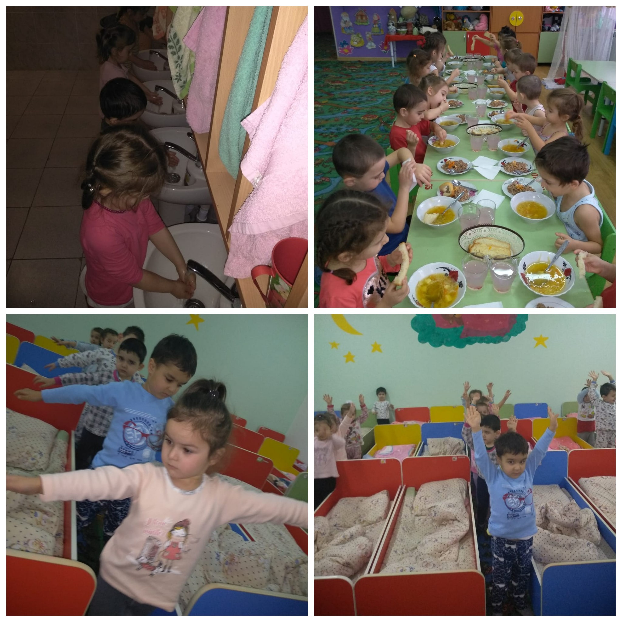 Режимные моменты в детском саду: привитие культурно – гигиенических навыков во время приема пищи, закаливающие процедуры, гимнастика пробуждения.