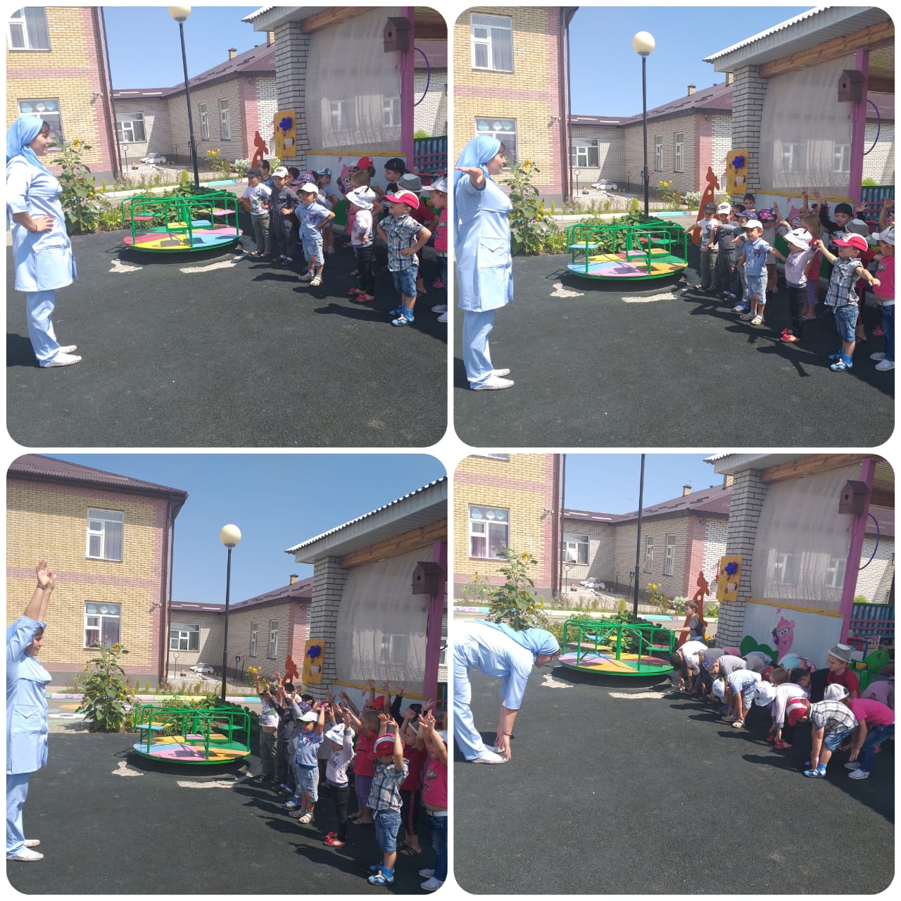 Утренняя гимнастика на свежем воздухе во второй младшей группе «Радость» (воспитатель Болтиева З.Т.)